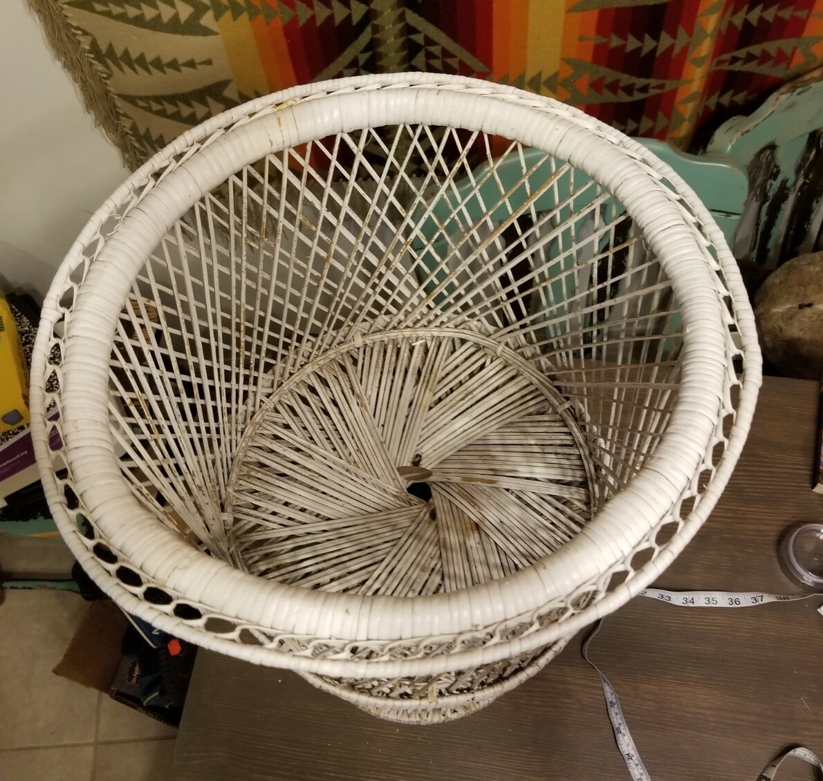 Vintage Shabby White Wicker Fern Stand Jardiniere W Large Rattan Plant Basket